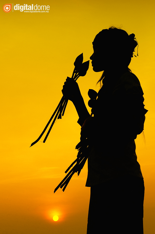 Khmer girl with lotus flower during the sunset