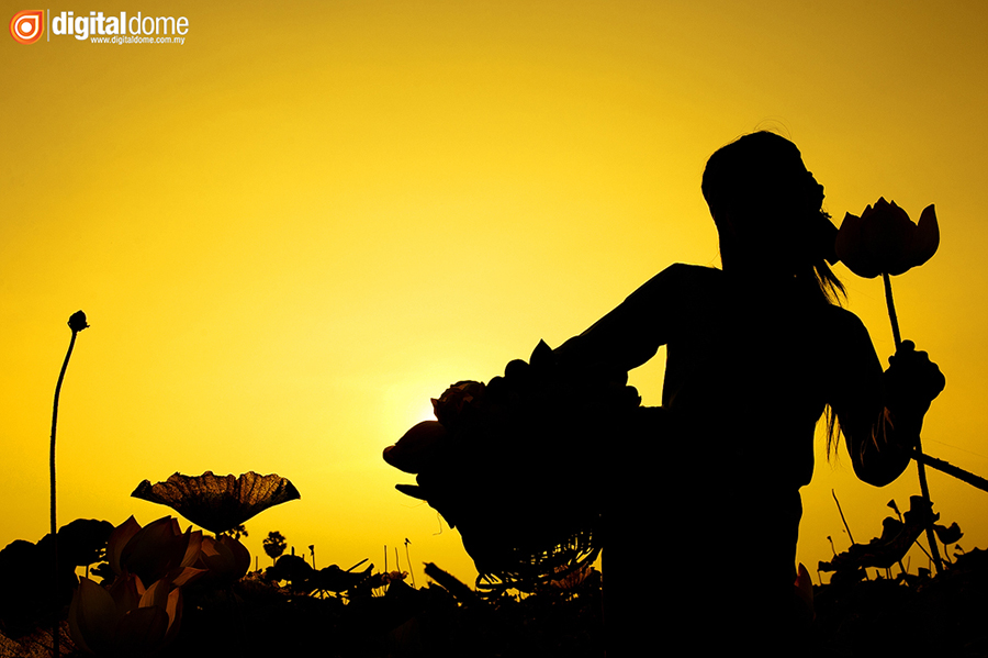 By DigitalDomePosted on 15 January, 2012In Cambodia Tags:cambodia Khmer girl with lotus flowers during the sunset